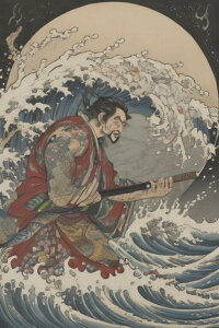 お部屋のインテリアとしてもお使いいただけます。検索用: 室内 飾り 布 インテリア タペストリー 昭和レトロ 入れ墨風 部屋 アート グラフィック 武士 波 月 刺青 刀 タペストリー 和柄 和風 大きい 男気 日本画風 入れ墨風 ア...