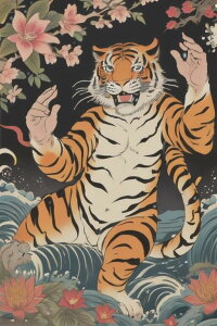 お部屋のインテリアとしてもお使いいただけます。検索用: 室内 飾り 布 インテリア タペストリー 昭和レトロ 入れ墨風 部屋 アート グラフィック 虎 花 波 月 蓮 タペストリー 和柄 和風 大きい 男気 日本画風 入れ墨風 アウト...