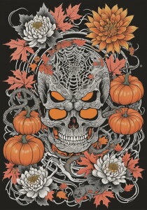 お部屋のインテリアとしてもお使いいただけます。検索用: 室内 飾り 布 インテリア タペストリー 昭和レトロ 入れ墨風 部屋 アート グラフィック 骸骨 ドクロ 花 菊 カボチャ タペストリー 和風 和柄 入れ墨風 浮世絵風 ハロウィ...