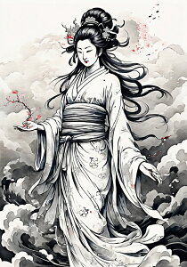 お部屋のインテリアとしてもお使いいただけます。検索用: 室内 飾り 布 インテリア タペストリー 昭和レトロ 入れ墨風 部屋 アート グラフィック 着物 女性 墨絵 花 雲 タペストリー 和風 観音 菩薩 仏 女性 癒し ヒーリング ...