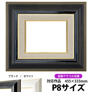 商品名 油絵用額縁 6013 P8(455×333mm)ブラック 前面UVカットアクリル仕様 色 ブラック その他の色 ホワイト 商品情報 サイズ:P8(455×333mm) 縁幅:75mm(ライナー部分含む) 縁厚:51mm(ドロ足...