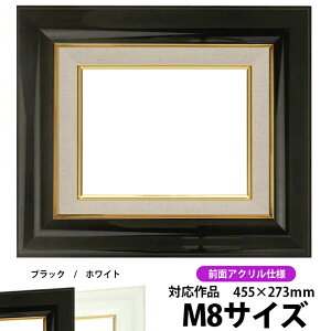 商品名 油絵用額縁 681 M8(455×273mm)ブラック 前面UVカットアクリル仕様 色 ブラック その他の色 ホワイト 商品情報 サイズ:M8(455×273mm) 縁幅:66mm(ライナー部分含む) 縁厚:54mm(ドロ足部...