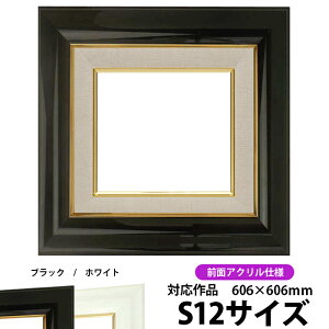 商品名 油絵用額縁 681 S12(606×606mm)ブラック 前面UVカットアクリル仕様 色 ブラック その他の色 ホワイト 商品情報 サイズ:S12(606×606mm) 縁幅:66mm(ライナー部分含む) 縁厚:54mm(ドロ...