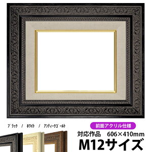 商品名 油絵用額縁 8203/ブラック M12(606×410mm)前面UVカットアクリル仕様 色 ブラック その他の色 ホワイト アンティークゴールド 商品情報 サイズ:M12(606×410mm) 縁幅:68mm(ライナー部分含む...
