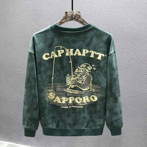 ウォッシュ加工 クルーネック 長袖Tシャツ ヘビーウェイト ゆったり ストリート系 カジュアル トップス 墨グリーン ブラック