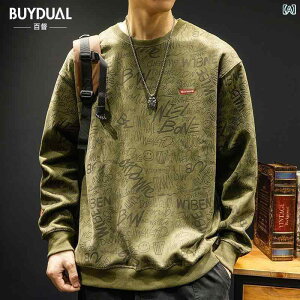ラウンドネック トレーナー ゆったり 大きめサイズ トップス カジュアル ストリート スタイル ポリエステル 墨緑 黒 グレー