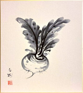 ■蕪 かぶら 蕪は頭に通じ頭(かしら)を目指すようにと 武家の間で縁起の良い食べ物とされて きました。 株が上がるにかけて評判が良くなると しても好まれています。 画像と同じ構図の作品をお届けします。 肉筆のため画