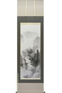 幾重にも棚引く山々が清々しい清涼感をあらわす 幾重にも重なる峰々、近景から遠景へと絶妙に変化する濃淡の妙。繊細な筆さばきにより、水墨山水の粋を凝縮した名作を描き上げました。 ●幅44.5×高さ164cm(小さめサイズ) ●本紙・・・