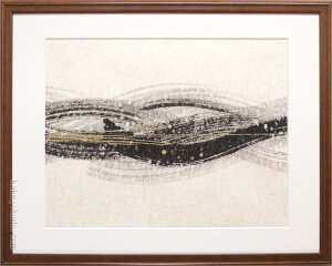 ※肉筆作品※【解 説】職人が一つ一つ丁寧に漉いた、「手漉き和紙」に墨で描いた味わい深い作品です。太陽の近くを通過する雲が赤や緑に彩られる幻想的な「彩雲」を墨の濃淡と手漉き和紙の模様を生かして