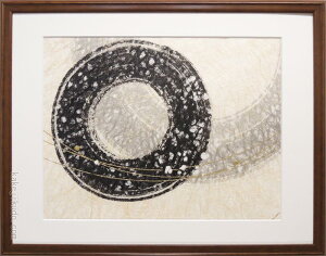 【画 題】遊星(ゆうせい) ※肉筆作品※【解 説】職人が一つ一つ丁寧に漉いた、「手漉き和紙」に墨で描いた味わい深い作品です。遊星とは惑星のことです。画面左に描かれた黒い円と、画面右に描かれたグレーの円の一部が重なり合い