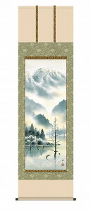 シリーズ山水画飾りモチーフ富士山水 広大な裾野から天へと聳え立つ霊峰富士。 神々しさを携える威厳に満ち溢れた姿を、巧みな筆さばきで精緻雄渾に描き上げた山水画の名品です。仕様正絹本表装 軸先:陶器 ※桐箱畳折収納生産国日本サ