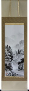 ギフト対応 店長の一言コメント 墨の濃淡のみで描かれた、神秘的で美しい山里の風景。 描かれている川は、喜びと幸せを運ぶと言われています。 飽きのこない年中掛けとして、季節を問わずお飾り頂ける掛け軸です...
