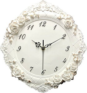 YRO ローズ レリーフ 掛け時計 エレガント 薔薇 静音 壁掛け 時計 30センチ級 美容院 寝室 ホワイト 姫系 かわいい (タイプB) 製品素材 :筐体とバラのレリーフ部分はアイボリーに近い白色でエコ樹脂でできています...