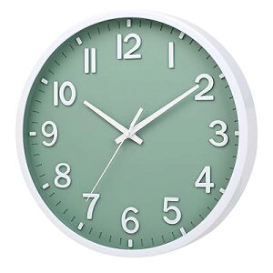 掛け時計 静音 壁掛け時計 厚いベゼル 北欧 連続秒針 立体数字 アナログ 掛時計 インテリア 大数字 見やすい居間 寝室 室内装飾 贈り物 30CM (緑と白)ブランド色緑と白モデル商品説明【商品概...