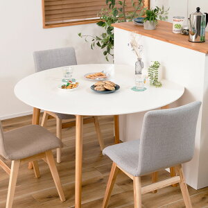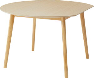 北欧テイストの天然木の脚がおしゃれな、壁付けできる変形ラウンドテーブル。どんなインテリアにも合わせやすいシンプルなデザインで、4人用としての使用にも十分な広さの木製ダイニングテーブルです。