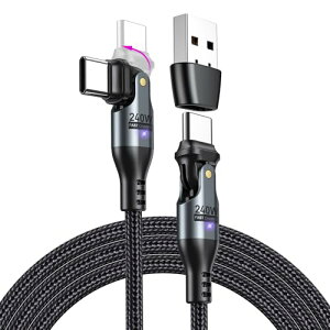 240W USB C to C ケーブル 1.8M 両端180°回転可 PD超高速充電 タイプC ケーブル 高速データ転送 USB-A変換アダプタ付き MacBook Pro/Phone15/15 P...