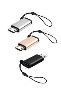 マイクロUSB-タイプC 変換アダプター 3個セットUSB Type C to Micro USB 変換 コネクタ データ転送 ストラップ付 紛失防止 小型 簡単に持ち運 Xperia/Galaxy/...
