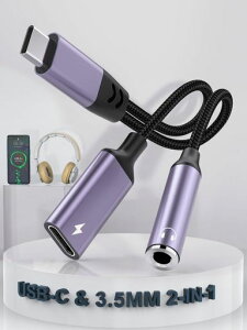 【2in1タイプCイヤホン変換ケーブル】TypeCポートをPD対応USB-Cポートと3.5mmオーディオジャックに分岐して動作する、便利な2in1多機能Type-C変換ケーブルです。これ1本でデバイス...
