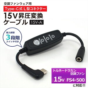 15V Type-C昇圧アダプター風量調整3段階スイッチ付き【15V-C】。◇16Vタイプよりバッテリー長持ち!◇最初の1時間は15V!その後は12Vに切り替わるのでバッテリーの消費を抑えられます!
