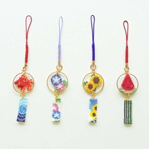 夏の涼を感じさせてくれる「風鈴」をイメージしたビーズステッチキットです。 リングパーツで風鈴のガラス部分を表現しました。 金魚はヒレの部分は一枚で、体部分は編み合わせた中に綿を入れる事で金魚らしい形に仕立てました...
