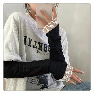 アームカバー ロング シースルー アームカバー レース 指なし 上