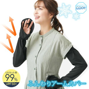 ■UVカット率99%!肩口から指先までカバーする約60のロングサイズ!冷感生地でふんわり包み込むアームカバーで涼しくUV対策♪ UVカット率99%&UPF50+でしっかり紫外線からガード!全長約60!腕全体をすっぽり覆って紫外線をしっ...