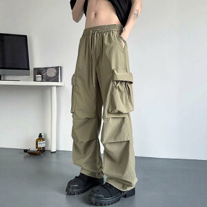 ワークパンツ メンズ 薄手 多ポケット 接触冷感 涼しい 夏用 ズボン カーゴパンツ リラックス ストレートパンツ イージーパンツ 無地 普段使い 作業着 ポリエステル ブラック カーキ・スタイル: 日系...