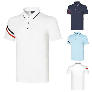 ヨーロピアン ゴルフウェア メンズ 半袖 Tシャツ 夏用 速乾 ラペル ポロシャツ 最適 男性用 ホワイト グレー 蛍光グリーン オレンジ