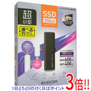 ELECOM 外付けポータブルSSD ESD-EWA0250GBK ブラック 250GB。スライド操作でUSB-AとUSB Type-C(TM)を切り替えられ、PC/スマートフォン/ゲーム機/テレビな...