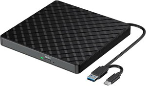 耐久性のあるABS素材が作られ、LEDインジケーターがあり、滑り止めボトム、新世代のPCに向けてUSB-AとUSB-C端子が揃い、アプリのインストールが不要、簡単のプラグアンドプレイ操作で使用出来るドライブ本体。