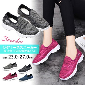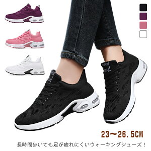長時間歩いても足が疲れにくいウォーキングシューズ!23〜26.5cm通気性のよいニット素材のアッパーが足ムレを軽減させてくれます。 エアソールが衝撃を吸収するため、脚の負担を軽減し疲れにくいです。高いグリップ力を誇るゴム素材のア