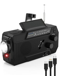 【充電式ソーラーラジオ、3つの内蔵ケーブル付き】市場にある他の充電式ラジオと異なり、この多機能ラジオは緊急電源として使用できる7400mWh/2000mAh電池を内蔵しているだけでなく、3つの内蔵充電...
