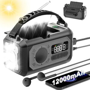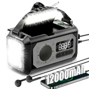 【12000mAh超大容量バッテリーと3つの充電モード】内蔵の12000mAhバッテリーにより、ラジオは携帯電話や小型タブレットなどのデバイスに緊急電力を供給できます。Type-C充電、ソーラー充電、手回し充電の3つの充電モードを備え...