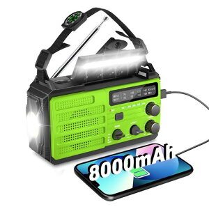 【8000mAh超大容量電池4つの給電方式】この手回しラジオは8000mAh充電式バッテリーにアップグレードするだけでなく、72時間の連続使用を提供するだけでなく、3ウェイ電源も提供します。電源が切れてしまう心配はありません。1)Ty...