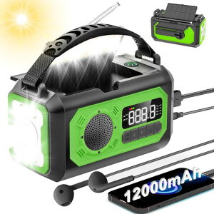 【12000mAh超大容量バッテリーと3つの充電モード】内蔵の12000mAhバッテリーにより、ラジオは携帯電話や小型タブレットなどのデバイスに緊急電力を供給できます。Type-C充電、ソーラー充電、手回し充電の3つの充電モードを備え...