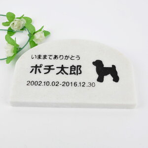 ギフト対応 ペットのためのメモリアルプレートです。 屋外で墓石として、室内でインテリアとしてご利用いただけます。立体的な加工で、安定感のある作りになっています。 文字部分の生存期間、名前、メッセージ、犬種シルエット等の変