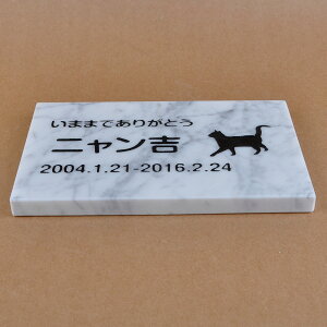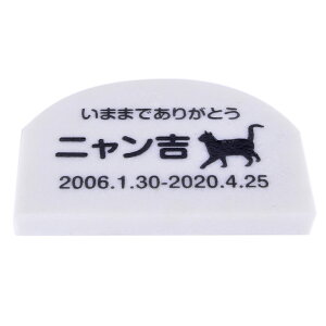 ギフト対応 ペットのためのメモリアルプレートです。 屋外で墓石として、室内でインテリアとしてご利用いただけます。立体的な加工で、安定感のある作りになっています。 文字部分の生存期間、名前、メッセージ、猫種シルエット等の変