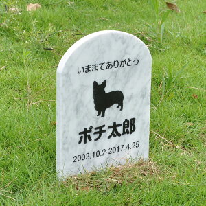 ギフト対応 ペットのためのメモリアルプレートです。 屋外で埋めてご利用いただくタイプの墓石です。 文字部分の生存期間、名前、メッセージ、犬種シルエット等の変更が可能です。 出来る限りお客様のご要望にお応え致しますのでご相談