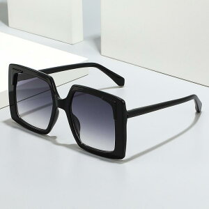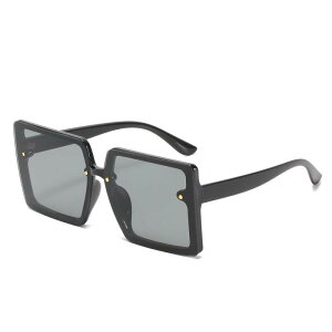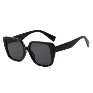 1類(薄色サングラス)・構造: フルリム・UVカットレベル: UV400・用途: ファッション・フレーム形状: スクエア・カラー展開: ブラックフレームxグレーレンズ、ブラックフレ