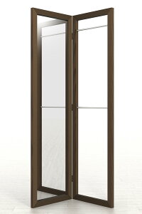 全身がしっかり映る高さ1800mmの大きい姿見鏡です。古くから日本にある「衣桁」を現代に昇華させたスタイルで、上下2段に洋服を掛けることのできるハンガーラック(2段タイプ)と対になっています。鏡およびハンガーラックの位置(左右