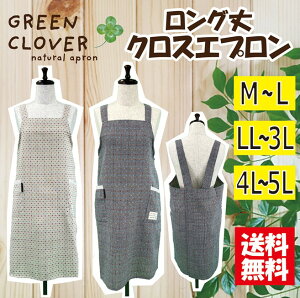 選べるサイズロング丈ラン型エプロン LL 3L 4L 5L キッチン 雑貨 カフェ ガーデニング 大きいサイズ ワンピース風 無地