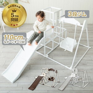 ワイドで広々。110cmのロングサイズすべり台は取り付け方によって「ゆるやか角度」と「すいすい角度」の2段階に高さ調節が可能。 大きくなっても遊びごたえ抜群の3段ジム。 1台で4つの遊具が遊べるから、長い間楽しめる。 ブランコを取り外...