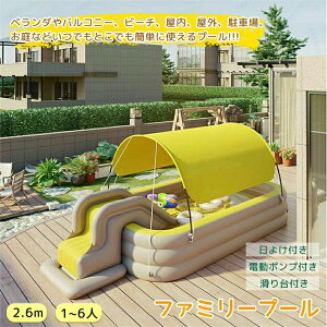 商品詳細情報 ポイント ※ご注意:滑り台推奨水位は20〜30cmです。耐荷重50kgです。 ・全面遮光サンシェード設計 プール上部を完全に覆う大型サンシェードを搭載。紫外線遮断率95%以上の高密度繊維を使用し...