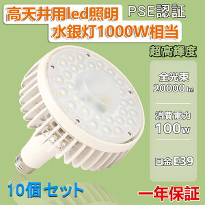 商品名 LED高天井照明 100W 消費電力 100W 全光束 20000LM 200LM/W 防塵・防水等級 IP65 発光角度 140度 調整角度 180度 電圧 AC85V~265V 50/60Hz 環境使用温度 -20〜+45...