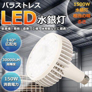 商品名 LEDバラストレス水銀灯 消費電力 150W 全光束 30000LM 200LM/W 電源 本体内蔵 発光角度 140度 電圧 AC85-265V 50/60Hz 環境使用温度 -20〜+45℃ 色温度 電球色3000K/昼白...