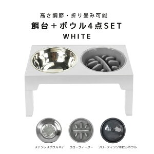 ----商品説明---- 高さが5段階に調整できる餌皿台は小型犬〜大型犬まで、幅広く対応しています! 餌皿ボウルは3種類あり、スタンダードなステンレスボウルが2つ、早食いを防止させるスローフィーダー、...