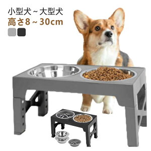 高さ8〜30cm 】【 フードボウル 】高さ5段調節可能のペットボウルスタンド付き、愛犬の体格などにあわせて食器の高さを変えられますので、首にかかる圧力を軽減したり楽な姿勢にできたりと、快適に食事