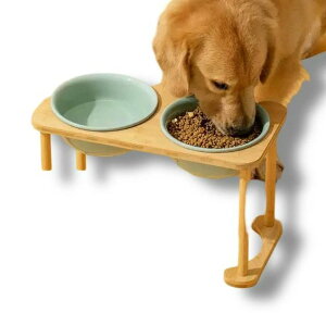 陶器のお皿が2つとスタンドのセットです。高さ28cmのハイタイプ。ゴールデンレトリバーなどの大型犬におすすめです。お皿を床に直置きするよりも、愛犬の腰や首の負担を軽減し、無理のない体勢で食べられるので吐き戻しなども