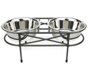 フードボウルテーブルに大型犬用ができました。適度な高さがあり、ボウルが手前に傾いているのでワンちゃんの首や足腰の負担が軽減されます。また、ステンレス製なので木製とは違い水洗いでき、錆びません。専用のボールもステンレス