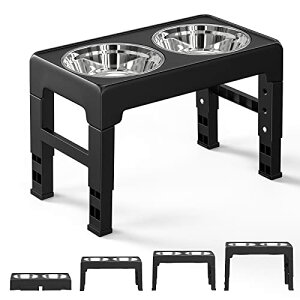 *6.6cm)◆商品名:Aystkniet 犬 食器台 中型犬〜大型犬向け ペット 餌台 ステンレスボウル 食器 エサ台 4段階 高さ調節可能 餌入れ 犬 ご飯台 (ブラック)■【4段階調節可能&健康給餌姿】食器台はペットが健康...